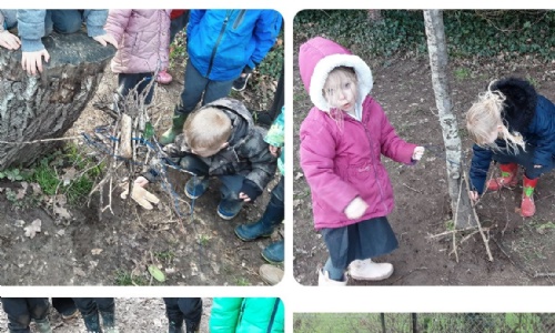 Year R had a brilliant time building dens during Outdoor Nature Discovery Time. The children gathered sticks, leaves and anything else they could find, then worked together to create some very impressive hideouts. There was so much chatting, planning, problem‑solving, and smiling - and our Gingerbread teddy loved trying all of the new dens out!