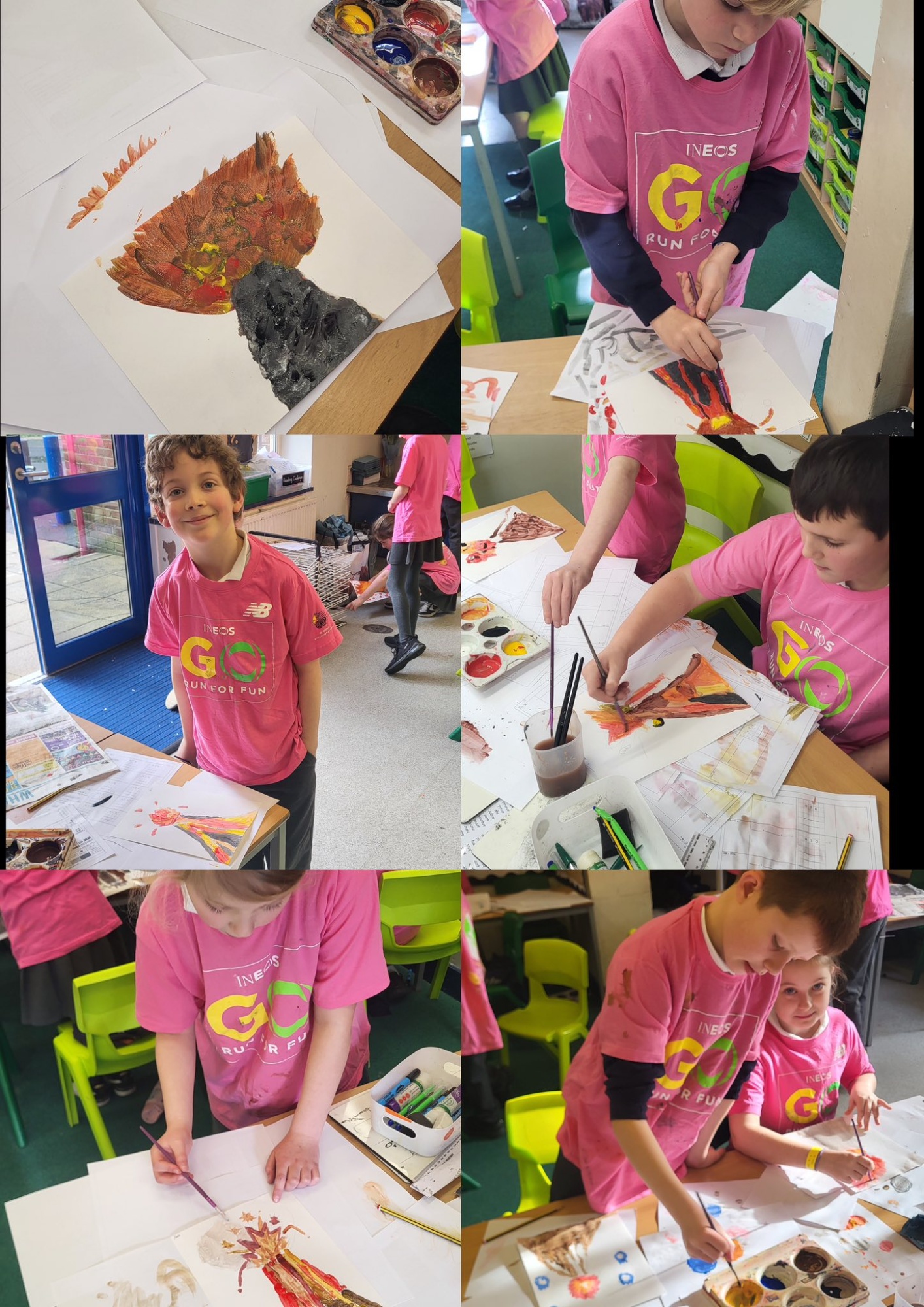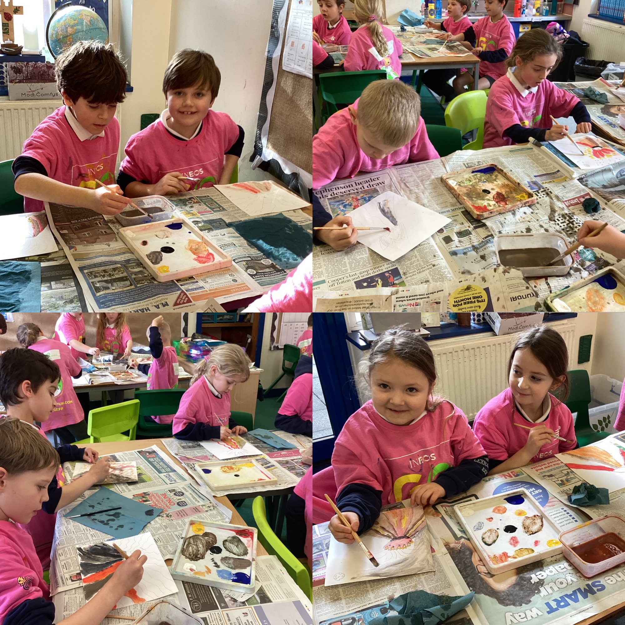 Lower Juniors have now began painting their volcanoes. The children threw themselves into colour mixing, bold splashes and experimenting with different effects. Next week we’ll add the splattering technique to transform them into abstract pieces inspired by Jackson Pollock. Jazz playing in the background (just like Pollock himself did!) made the whole creative session even better! Keep your eyes peeled for the final artwork! 🌋🖌️🎨
